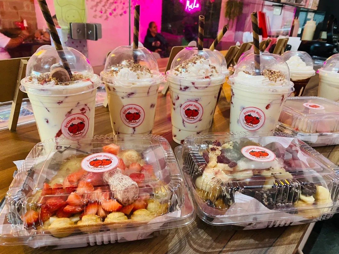 Fresame Mucho nació del amor por los postres y los momentos compartidos. Somos una cafetería de antojos dulces donde las fresas son las protagonistas, acompañadas de crema gourmet, waffles, mini donas, bebidas frías y café.
